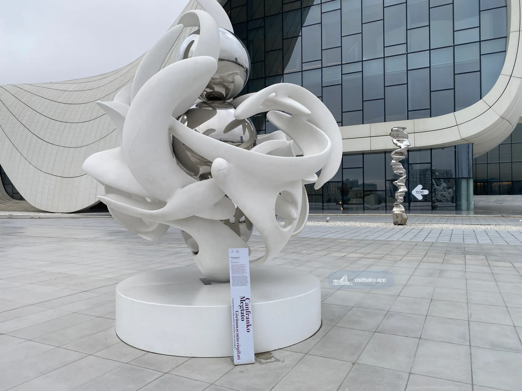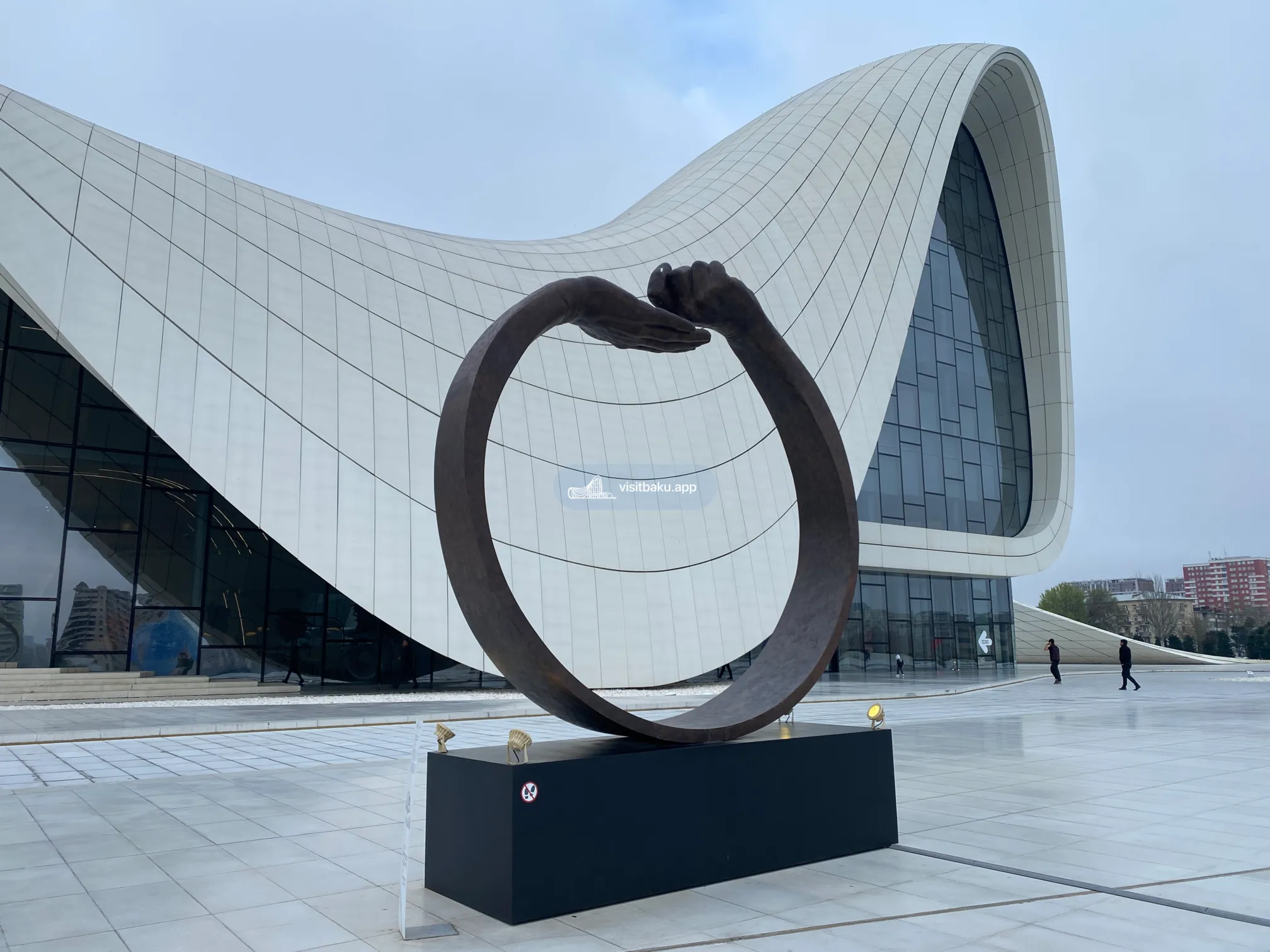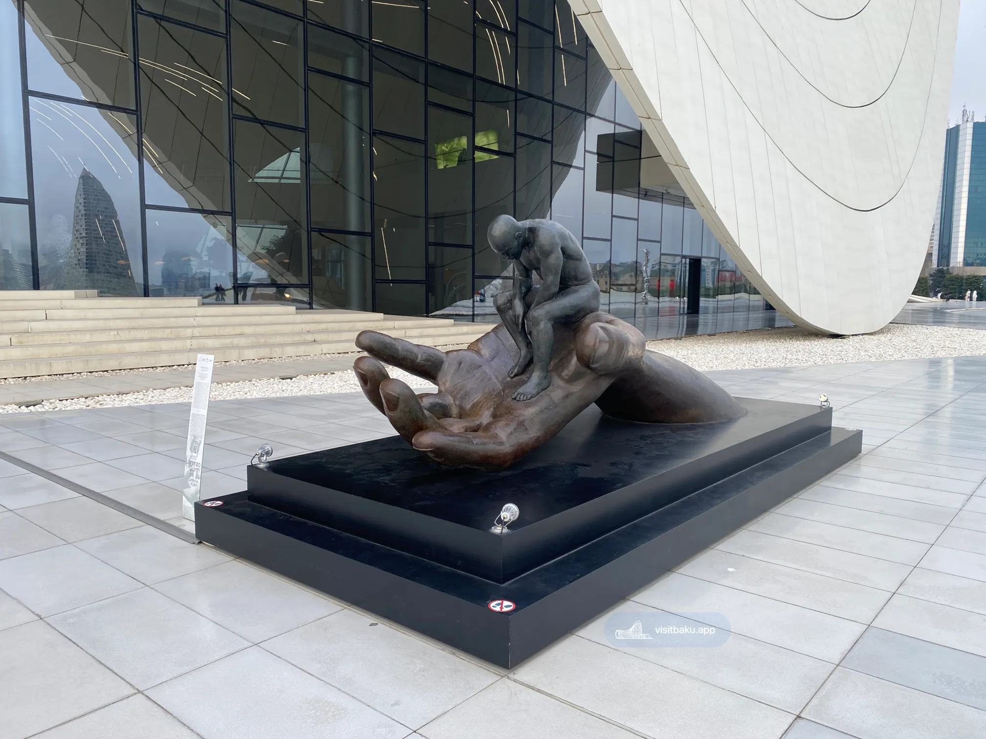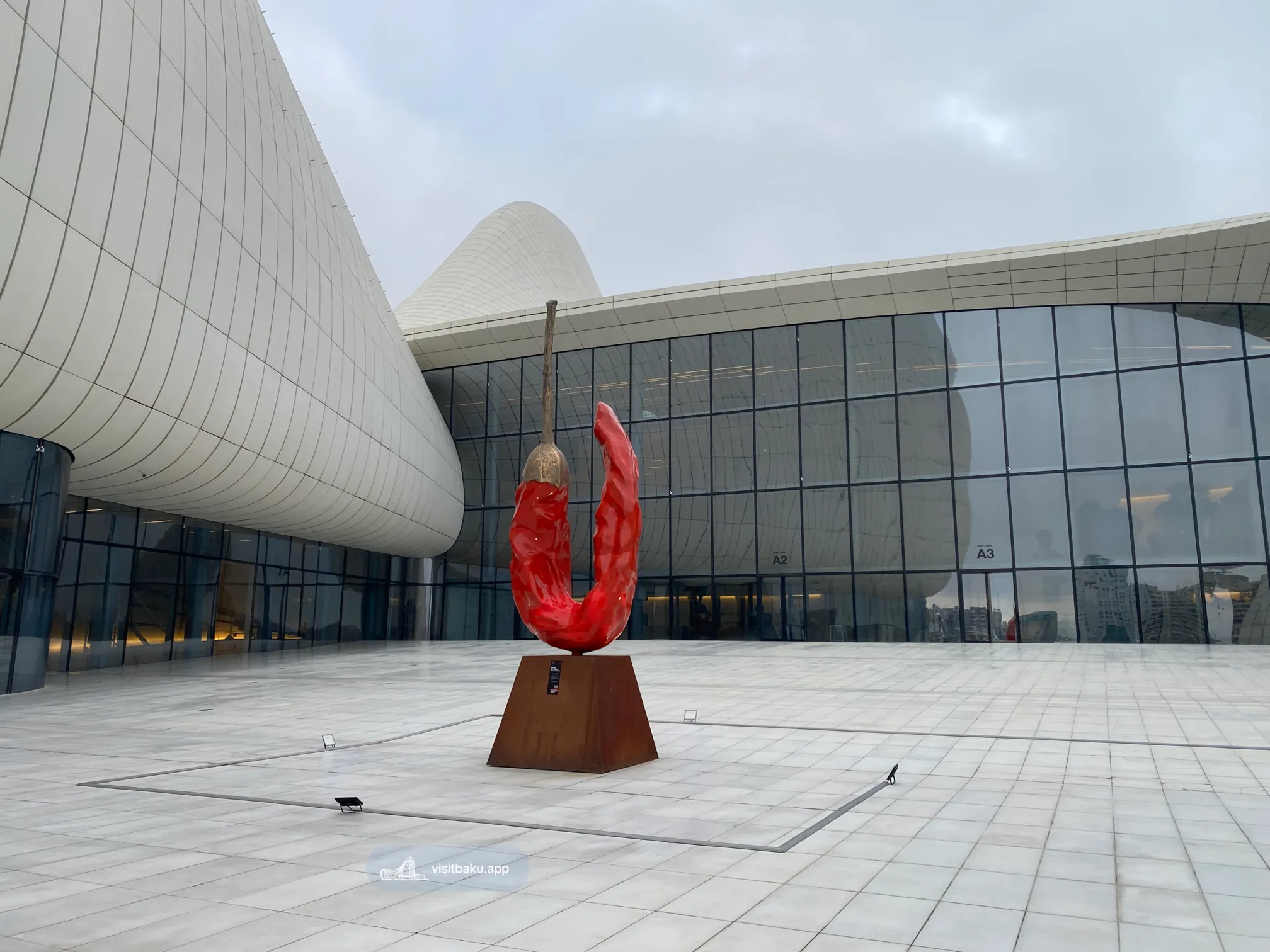 But the most interesting part begins outside. Yes, right under the open sky, around the Center, there is a collection of art objects you can’t just walk past. These installations are the work of both Azerbaijani and international artists, each carrying its own mood, idea, and character. Some make you think, others make you smile, and yet others impress with their scale or irony.