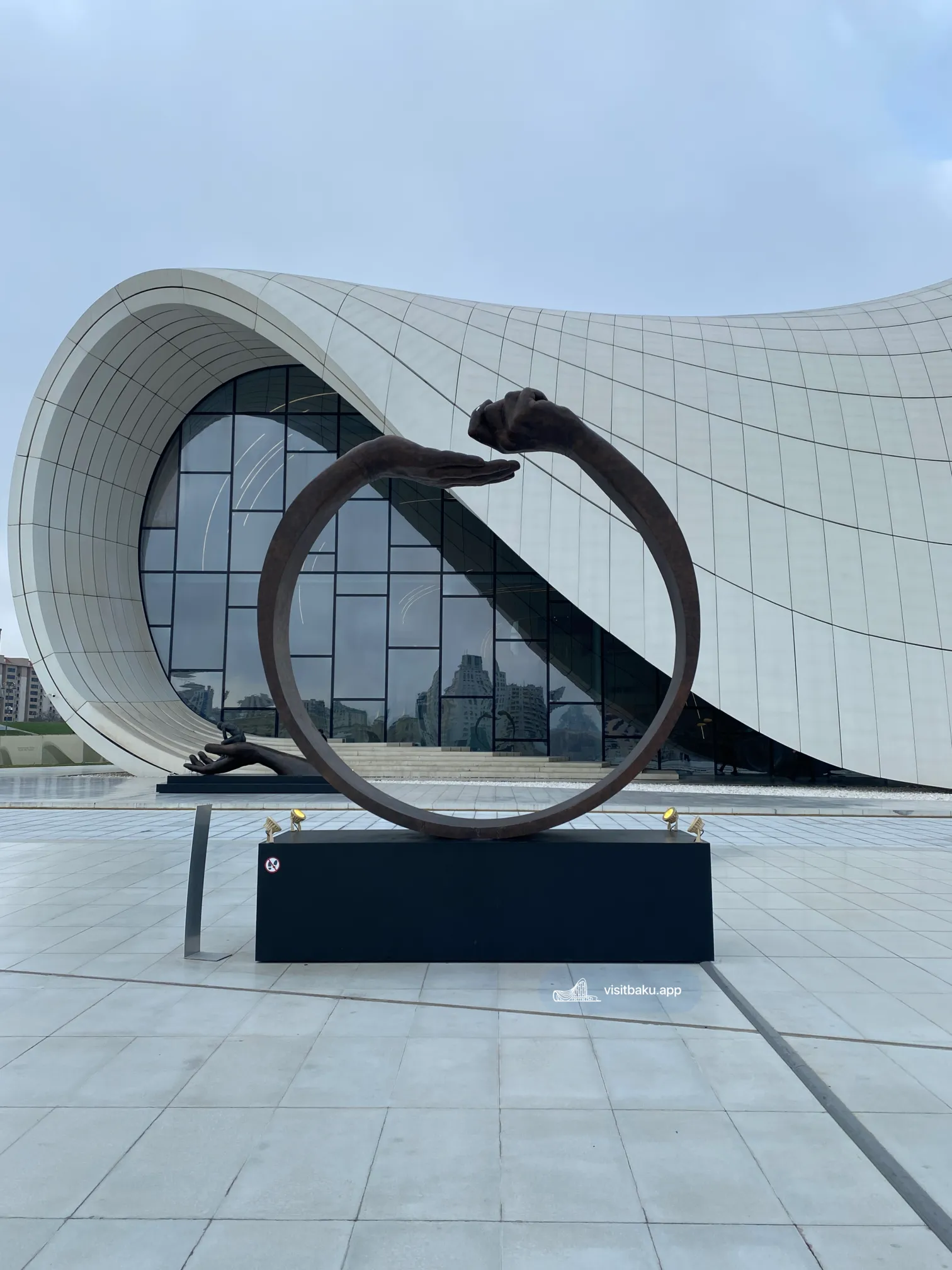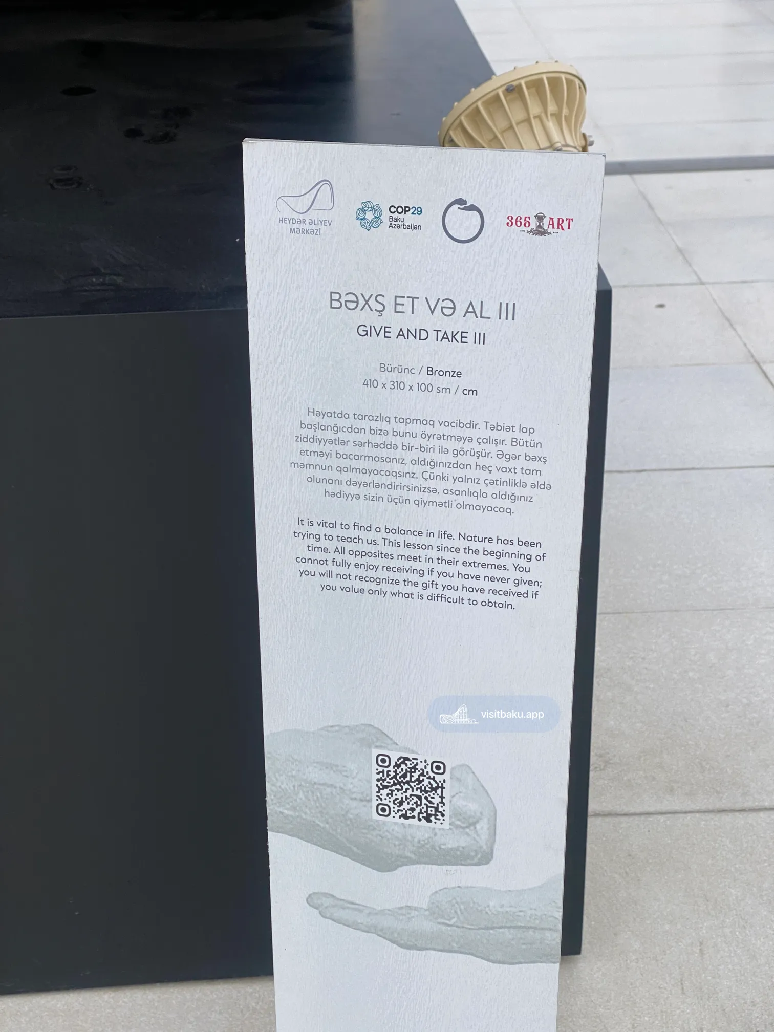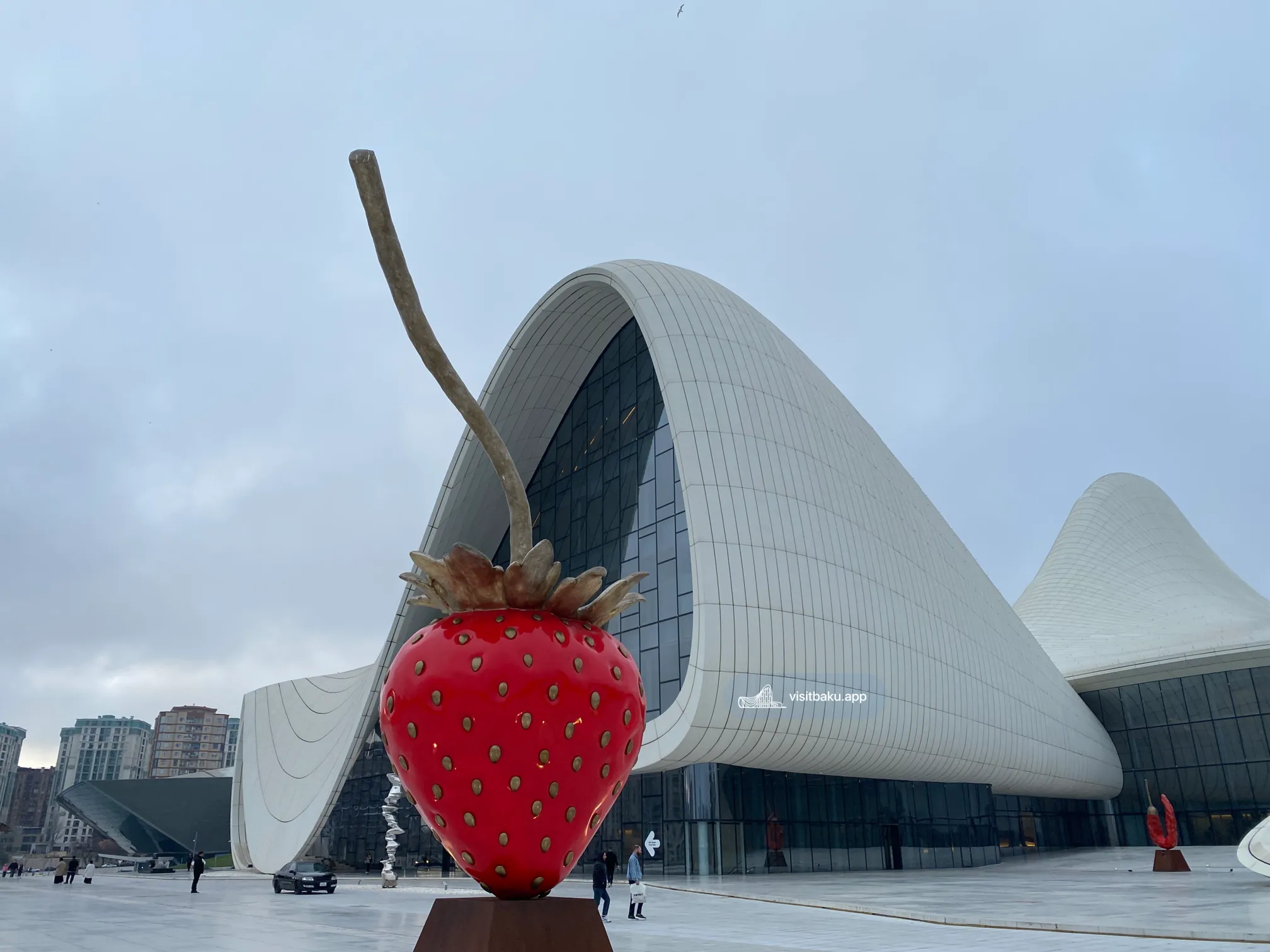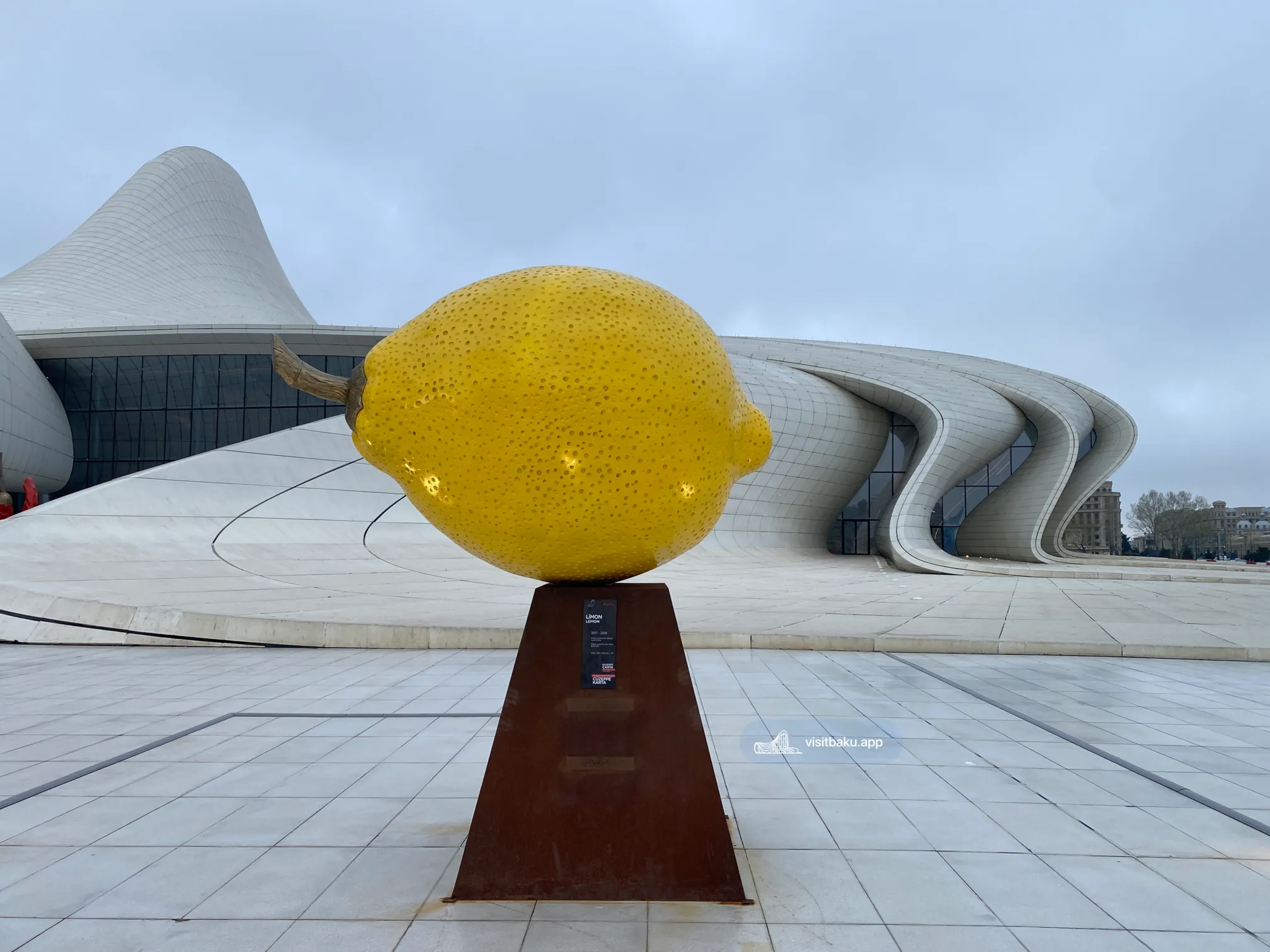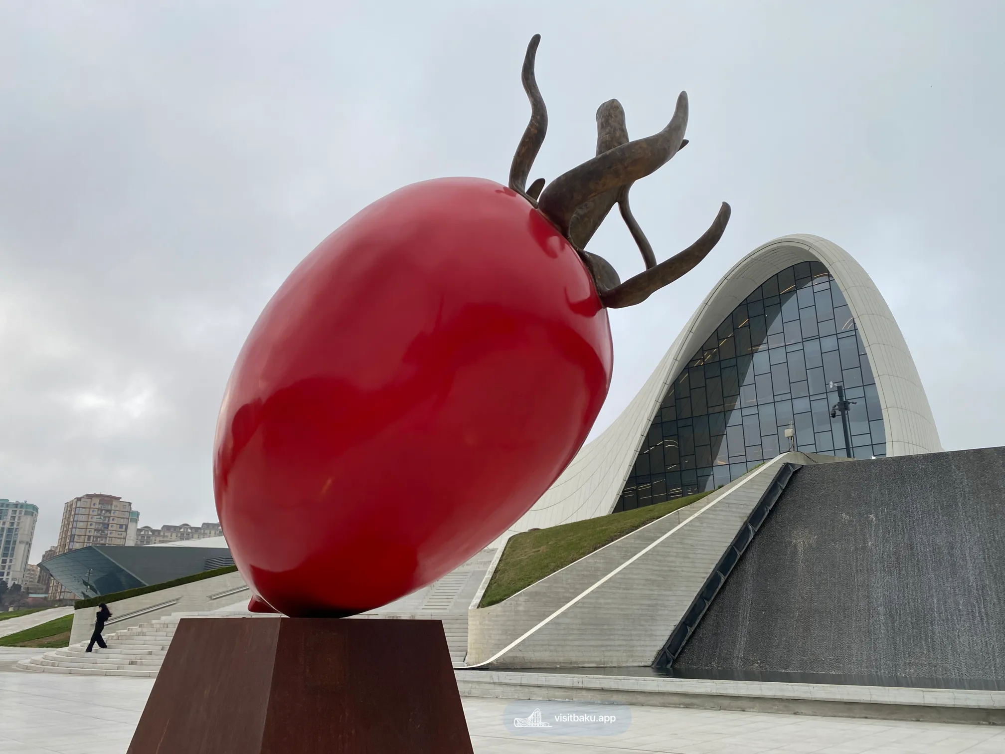 But the most interesting part begins outside. Yes, right under the open sky, around the Center, there is a collection of art objects you can’t just walk past. These installations are the work of both Azerbaijani and international artists, each carrying its own mood, idea, and character. Some make you think, others make you smile, and yet others impress with their scale or irony.