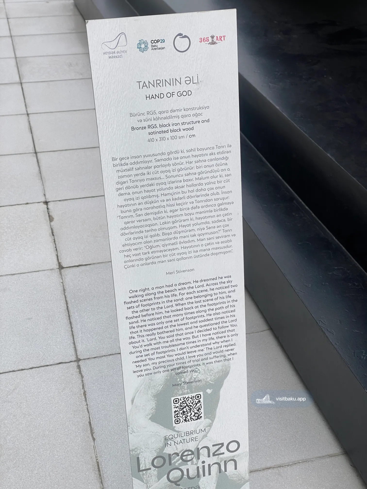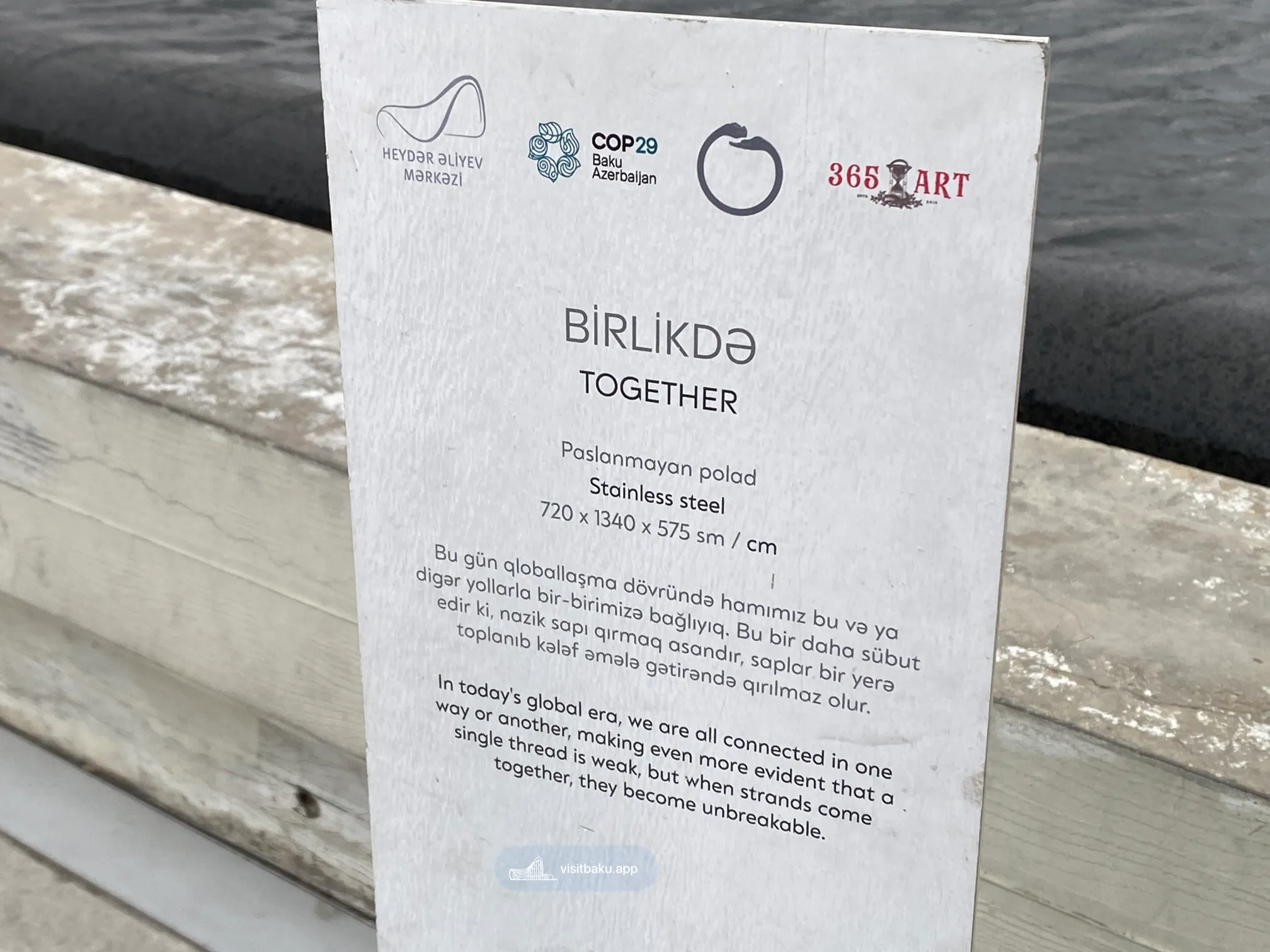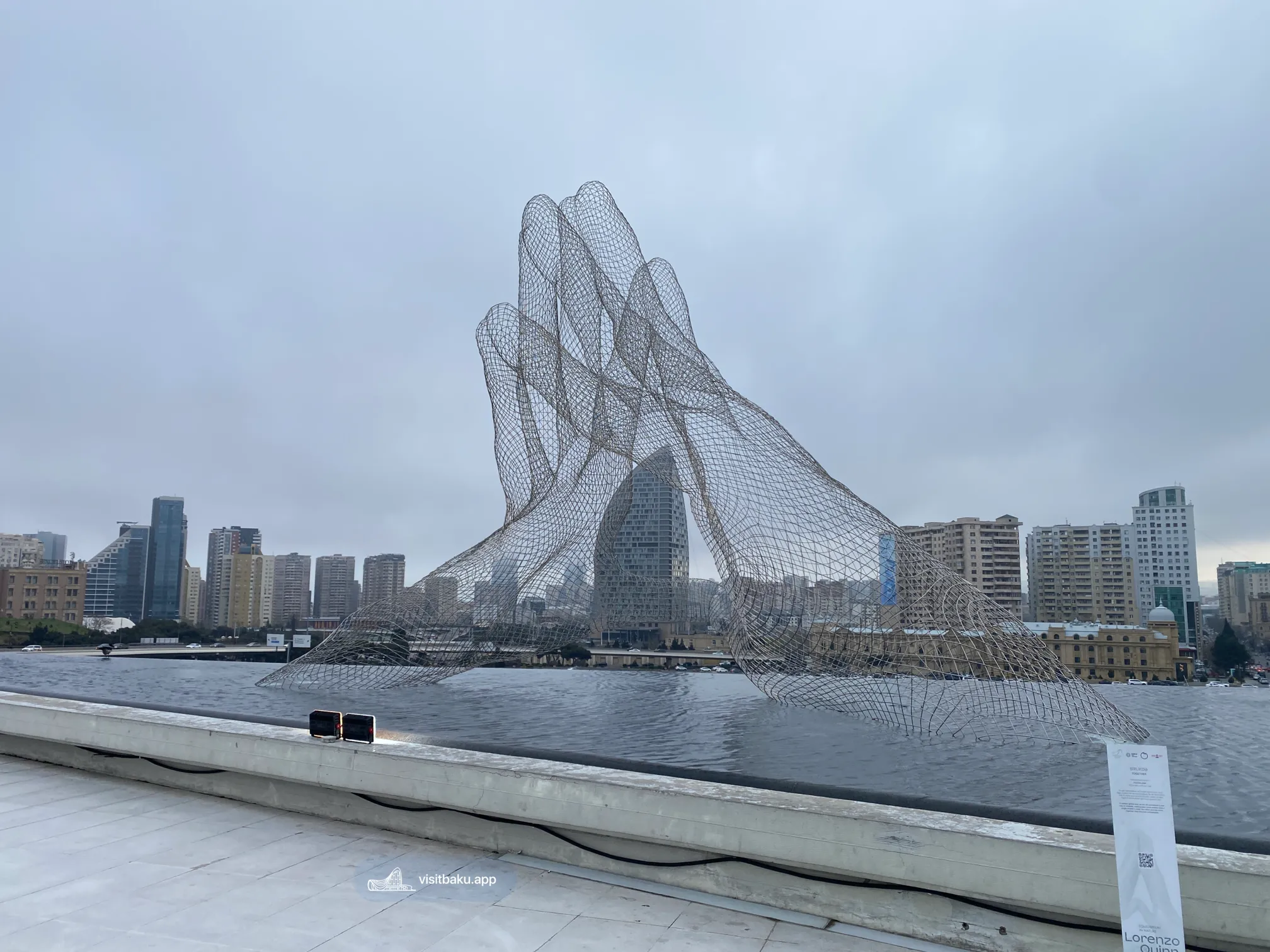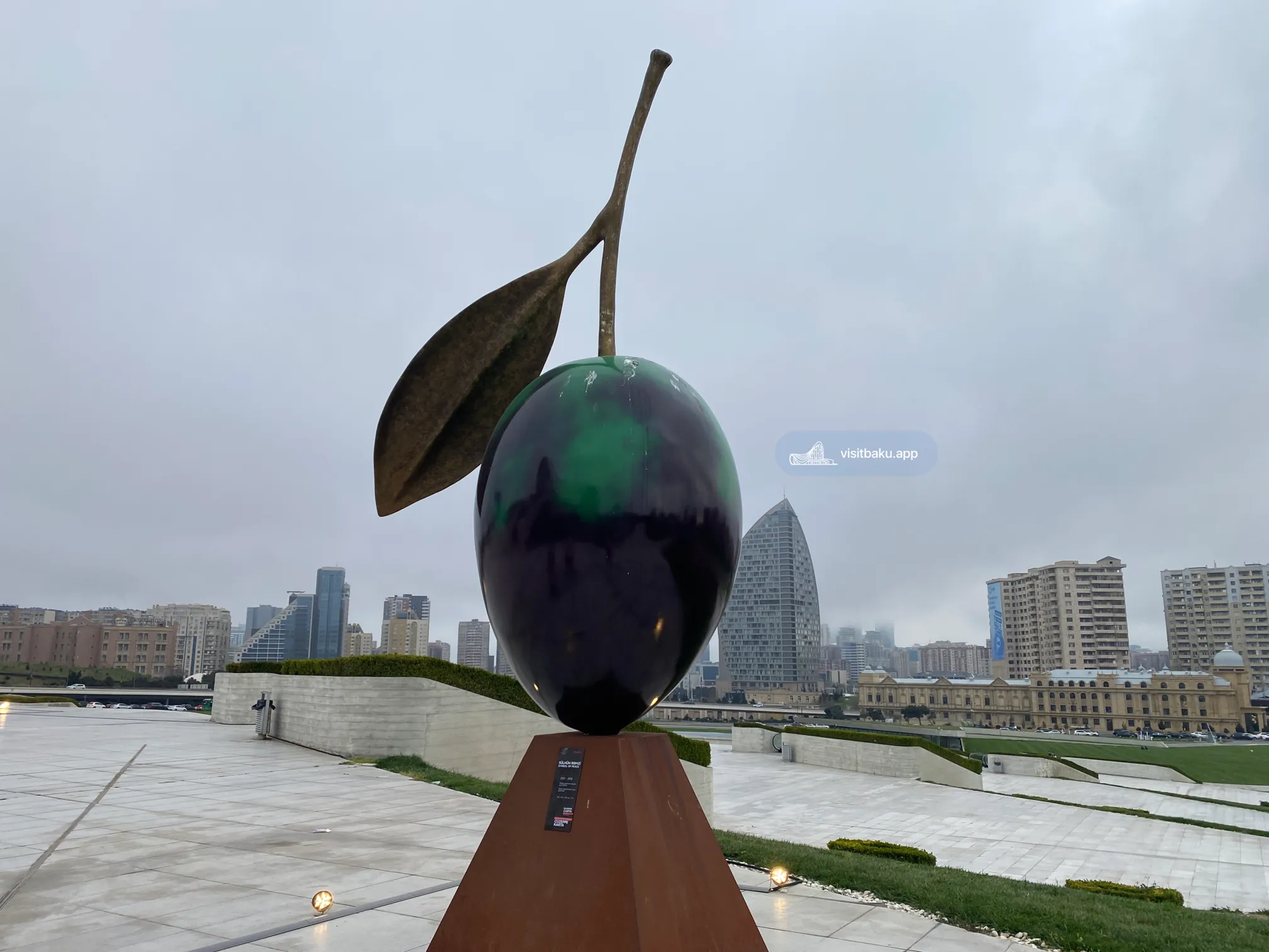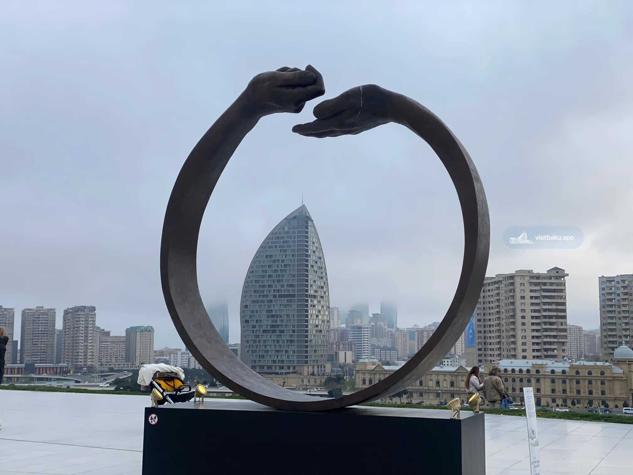 But the most interesting part begins outside. Yes, right under the open sky, around the Center, there is a collection of art objects you can’t just walk past. These installations are the work of both Azerbaijani and international artists, each carrying its own mood, idea, and character. Some make you think, others make you smile, and yet others impress with their scale or irony.
