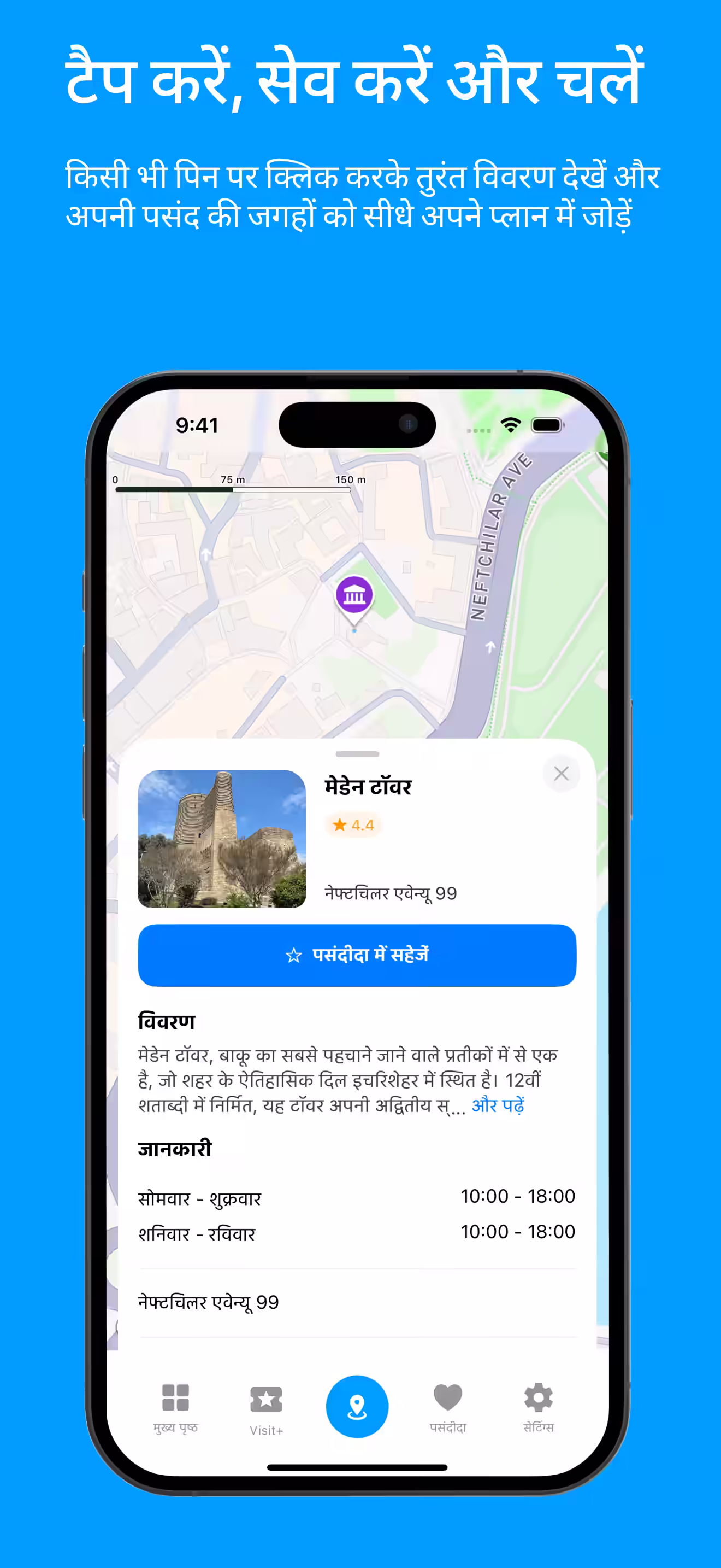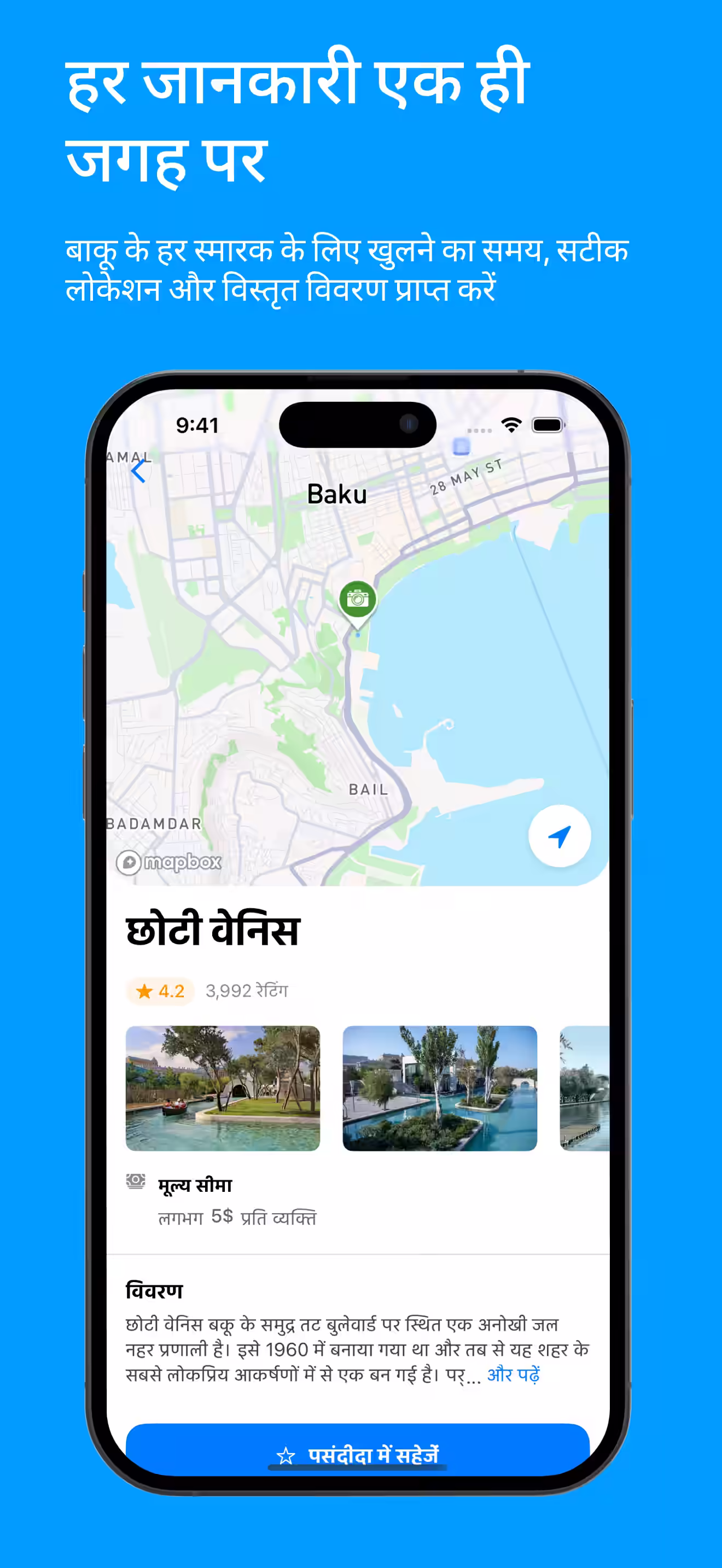 चाहे आप पहली बार बाकू जा रहे हों या बाकू के नियमित यात्री हों, Visit Baku आपकी योजना को सरल बनाता है, आपका समय बचाता है, और आपको हर पल का आनंद लेने में मदद करता है। ऑफ़लाइन उपलब्ध मानचित्रों और जानकारी के साथ, आप कभी भी खो नहीं जाएंगे, और हमेशा जानेंगे कि आगे क्या करना है।
